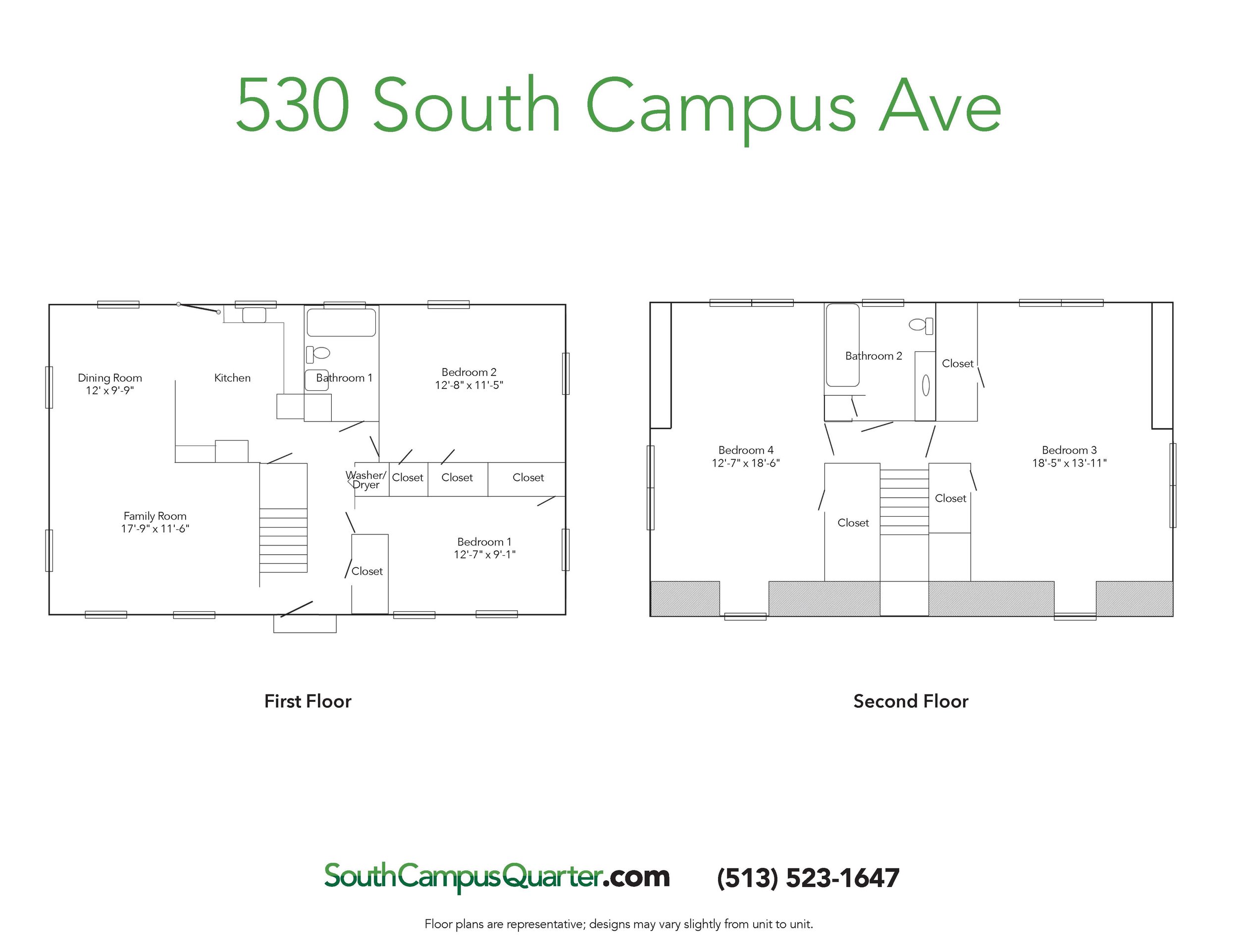 The 530 S Campus Ave house is a four-bedroom single family rental. It has spacious upstairs bedrooms, two full baths, and a large backyard.