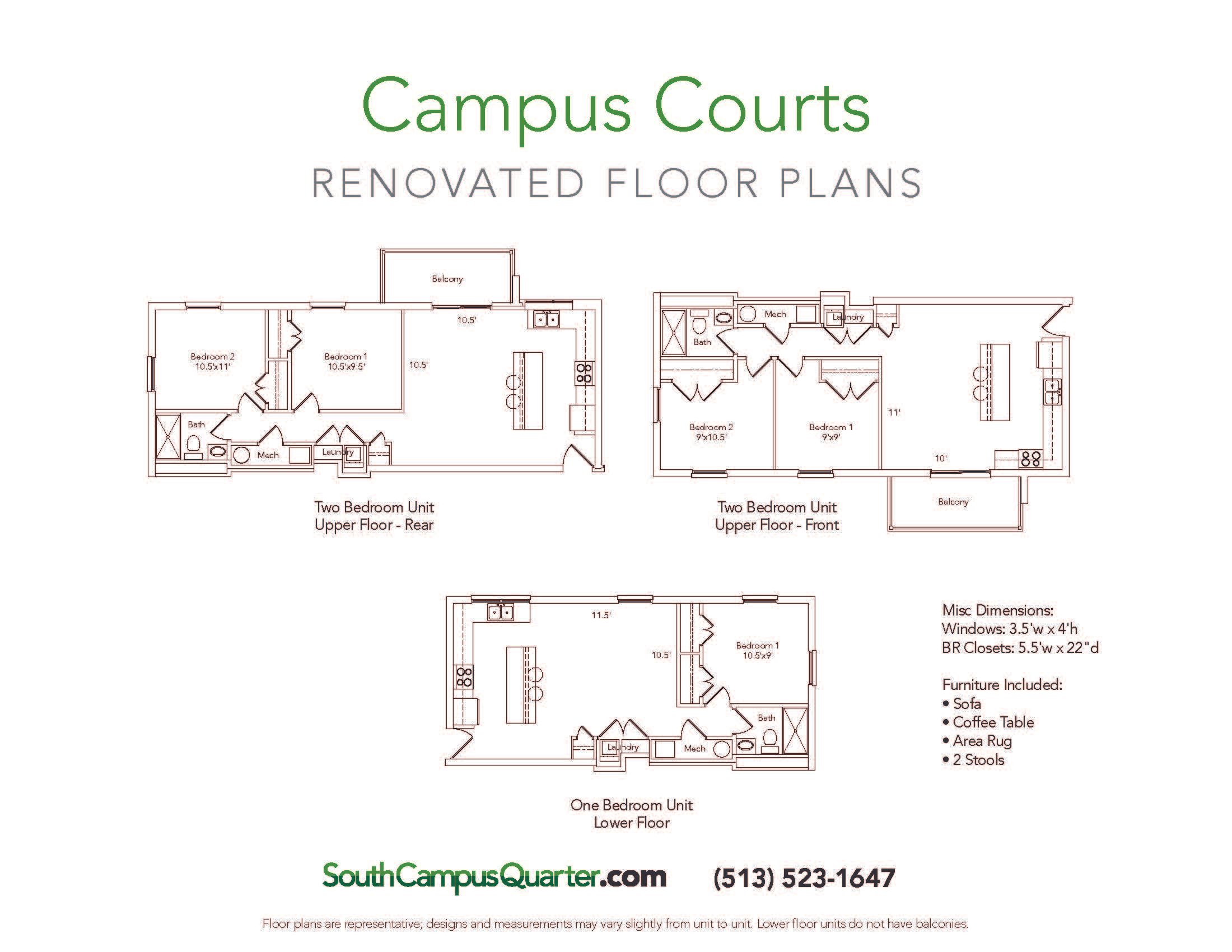 Campus Courts 1 & 2 Bedroom Apartments Highlights: